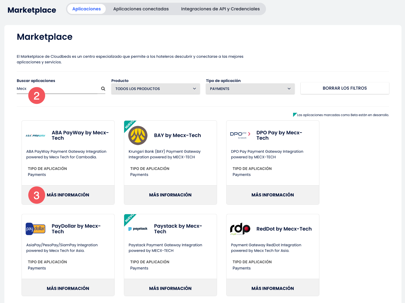 - Antes de conectarse desde Cloudbeds, siga las instrucciones para configurar una cuenta con el proveedor de la pasarela de pagos. Consulte los artículos de soporte que se proporcionan a continuación. Si ya tiene una cuenta, siga las instrucciones del Artículo de soporte para obtener su ID de comerciante y contraseña la que necesitará para utilizar Mecx-Tech.