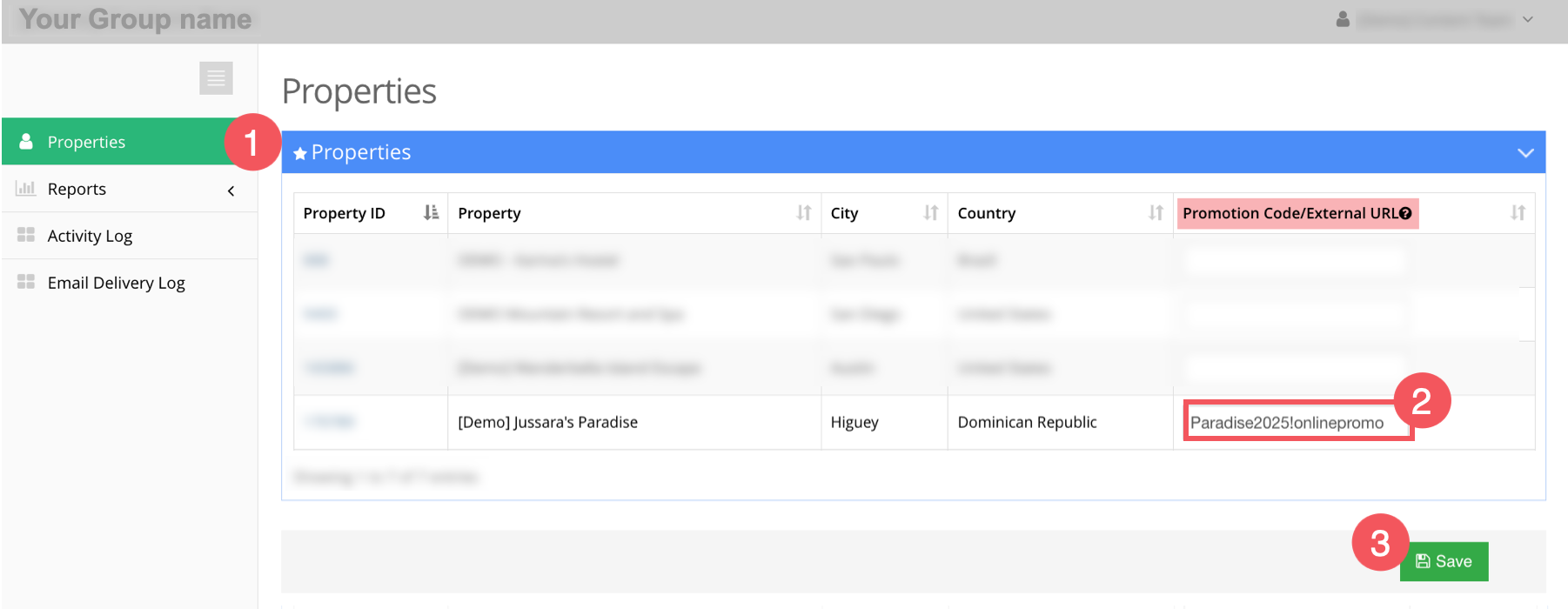 Consejo: Para actualizar o cambiar la foto principal que se muestra para una propiedad en el Groups Booking Engine, debes reordenar o reemplazar las fotos en la página de perfil de propiedad (Property Profile) de esa propiedad específica. Consulta Property Profile - Everything You Need to Know.