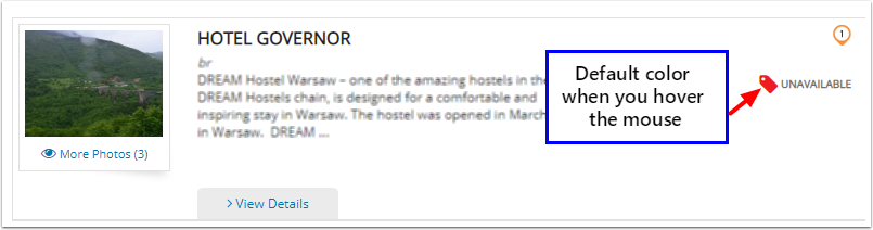 Cambia el color de la etiqueta cuando el mouse pase por encima. Reemplaza el código de color #008000 por cualquier otro color y agrega el código en la sección Encabezado personalizado para la página de reservas de tu hotel:
