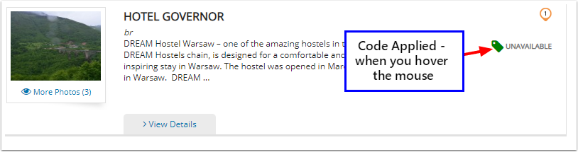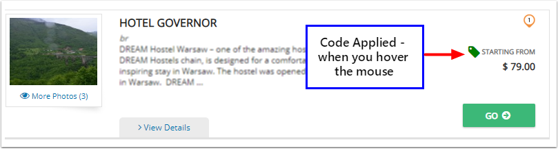 También puedes agregar tu código promocional del plan tarifario para redirigir a tu huésped a la página del Motor de Reservas, donde se mostrará el plan tarifario correspondiente.