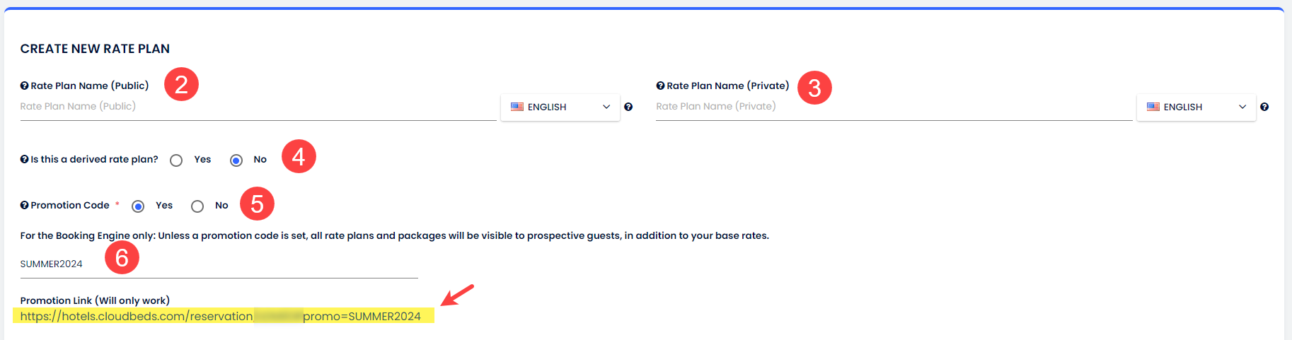- Ingresa el nombre privado del plan de tarifas (Rate Plan Name).