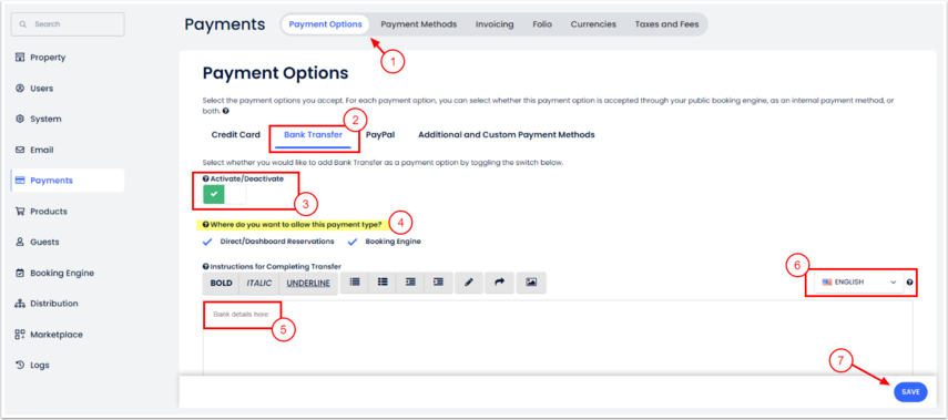 Configurar Transferencia bancaria como opción de pago en Cloudbeds PMS