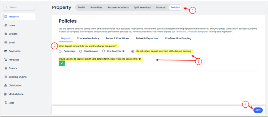 La Transferencia bancaria solo se mostrará en el Motor de reservas de Cloudbeds cuando tengas configurado un monto de depósito en tus Políticas.