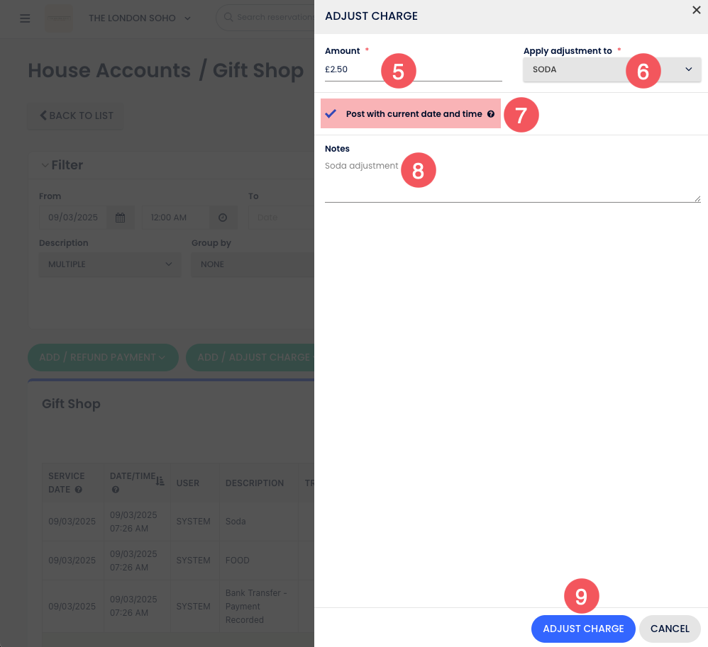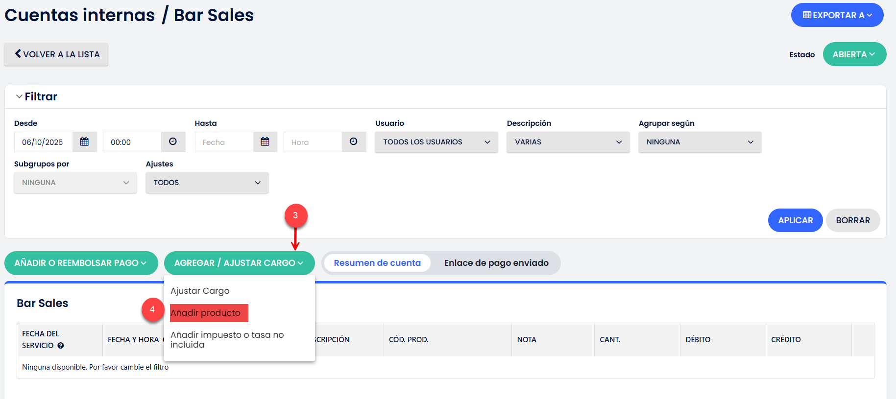 Este artículo muestra cómo añadir productos o ajustar cargos en sus Cuentas internas.