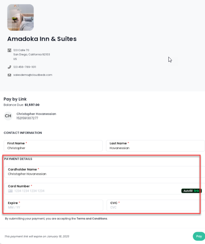 - Aquí está lo que los huéspedes verán cuando sigan el enlace para pagar: