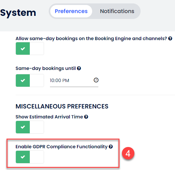 - Desplázate hacia abajo hasta PREFERENCIAS VARIAS y activa el interruptor de Funcionalidad de cumplimiento del GDPR.