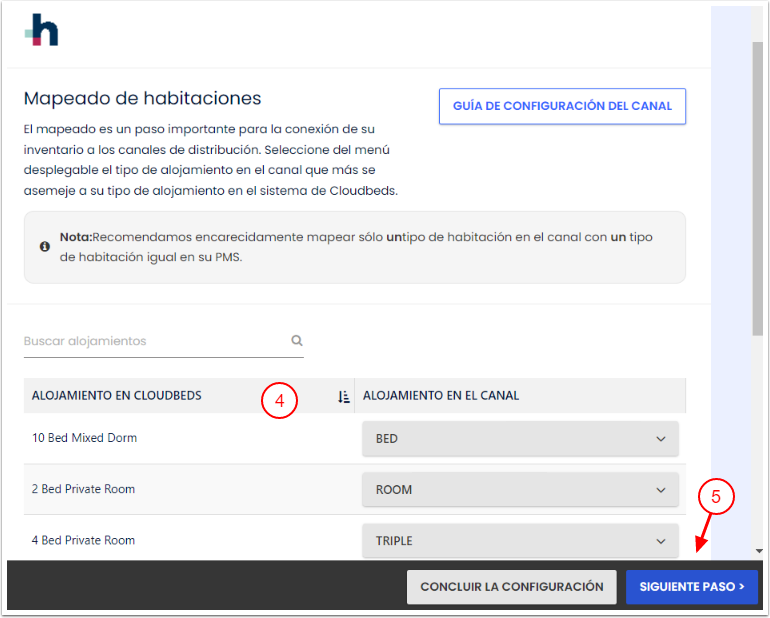 Paso 2 - Inicie el mapeado de Hotelbeds en el PMS de Cloudbeds
