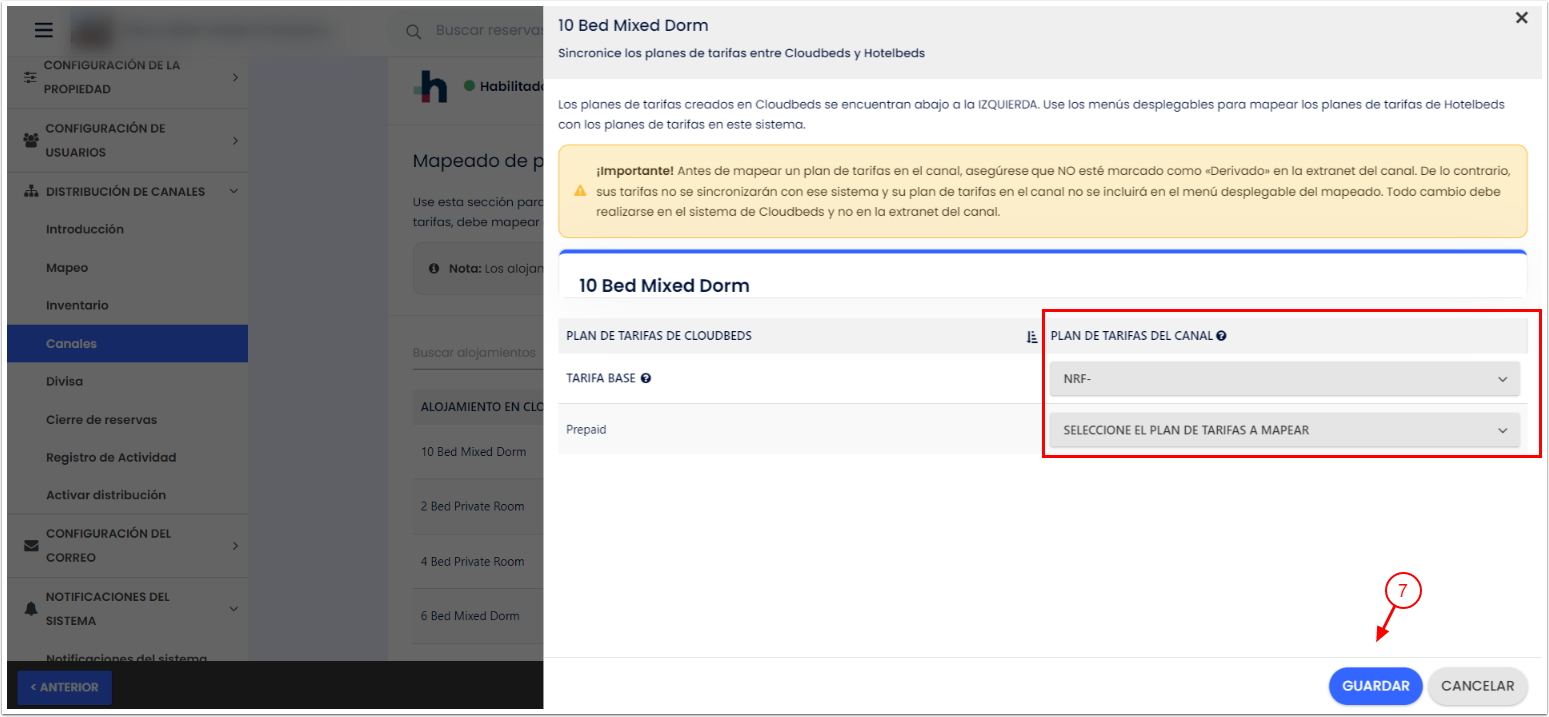 - Cuando la opción de tarifas avanzadas para canales sí está habilitada, usted puede mapear varios planes de tarifas de Cloudbeds con sus contratos de Hotelbeds.