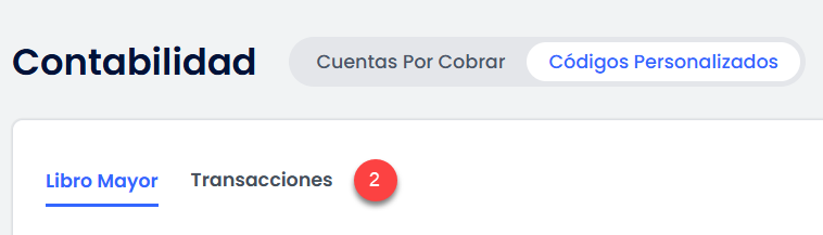 El botón en la parte superior de la página te permite cambiar fácilmente entre las secciones de "Transacciones" y "Libro mayor".