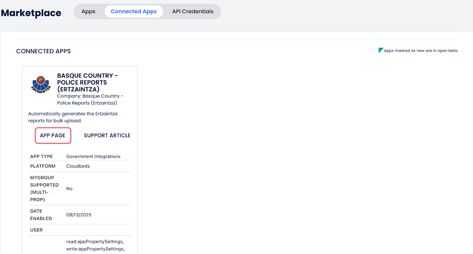 Después de permitir el acceso, serás redirigido a Aplicaciones Conectadas. Haz clic en Página de la Aplicación.