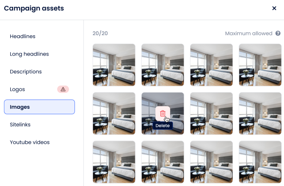 - Evita imágenes borrosas, oscuras, muy editadas o que no estén relacionadas con tu propiedad. Los recursos de baja calidad pueden rechazarse y no se añadirán a la biblioteca de tu campaña.