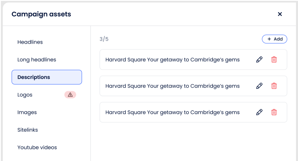 - Añade 4 o más descripciones, con un máximo de 90 caracteres cada una.