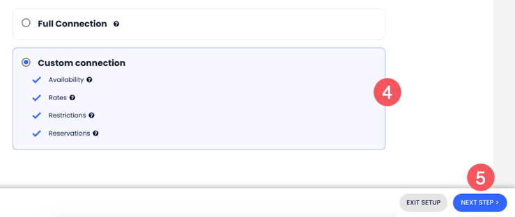 5. Haz clic en Next Step y finaliza la configuración de habitaciones, tarifas y mapeo del canal, continuando con la misma guía de conexión cuando sea necesario.