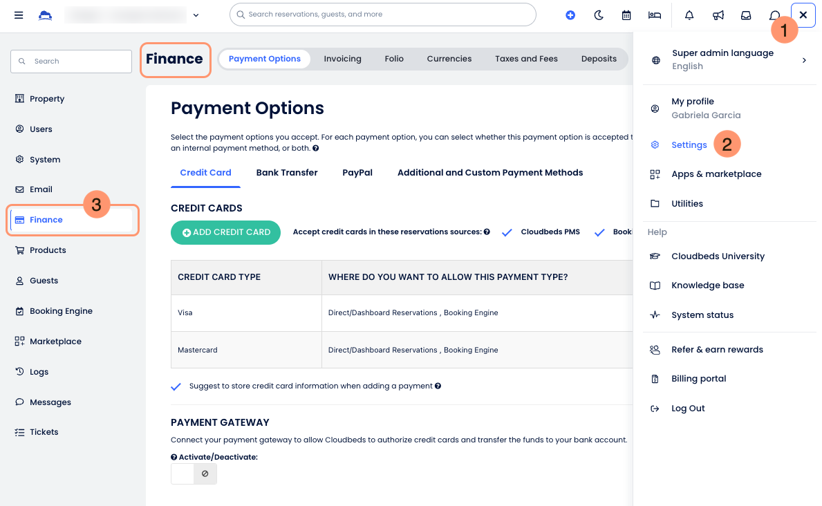 Este cambio resuelve esa confusión. La sección en Configuración ahora se llama Finanzas para diferenciar con distanciar con claridad la configuración y Cloudbeds Payments, donde se ven y procesan transacciones.