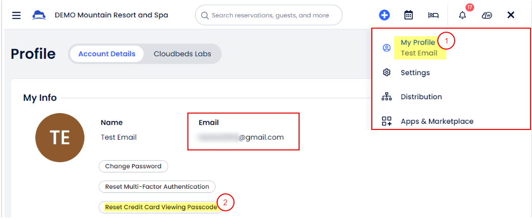 Este artículo explica cómo restablecer una contraseña para ver datos de tarjetas de crédito, así como cómo desactivarla para usuarios específicos de la propiedad en Cloudbeds PMS.