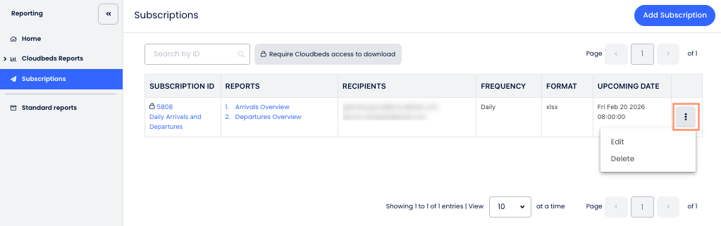 - Tipos de informes: Los clientes que no son de pago solo pueden suscribirse a los informes predeterminados de Cloudbeds (no a informes personalizados ni a informes clásicos).
