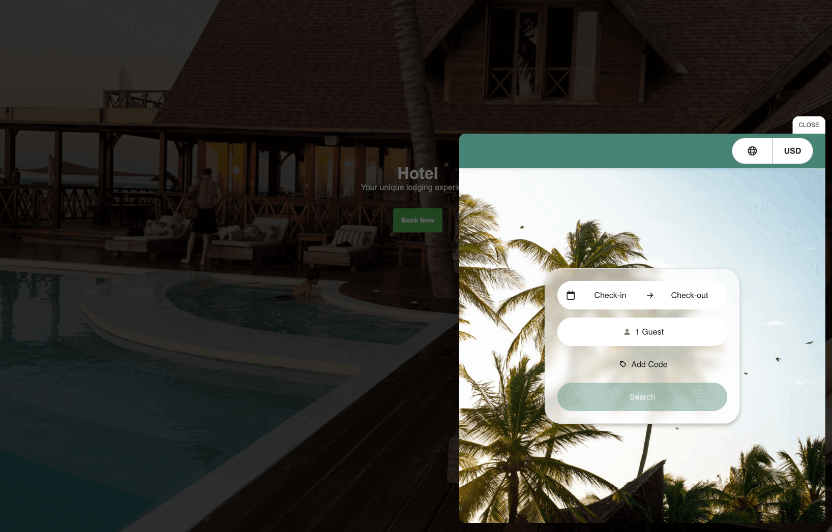 - Ayuda a mantener a los huéspedes dentro del entorno de tu sitio web mientras consultan la disponibilidad y continúan con el flujo de reserva