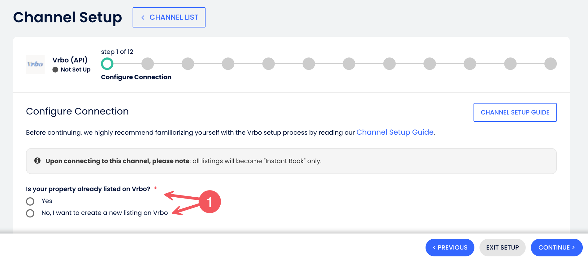 - Formulario de incorporación de VRBO: no completes este formulario hasta que hayas terminado todos los pasos en Cloudbeds y llegues al paso de confirmación que se muestra abajo. El formulario requiere información para Vrbo, que solo se genera al completar todos los pasos de configuración.