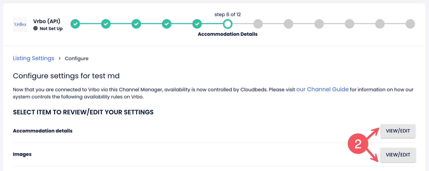 - No puedes iniciar oficialmente el proceso de incorporación con Vrbo hasta que completes todos los pasos de contenido del canal de la API de Vrbo en Cloudbeds PMS. Una vez que completes todos los pasos, se te proporcionará el ID de usuario de Cloudbeds/ID de anunciante de Vrbo para avanzar.