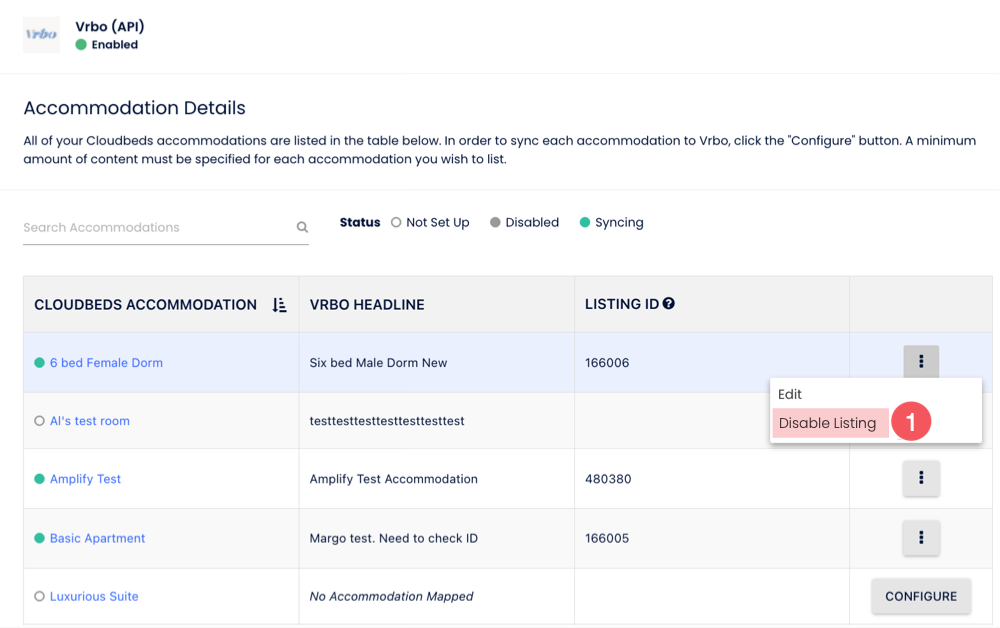 - Haz clic en Configurar en cada alojamiento (deberás configurarlos uno por uno).