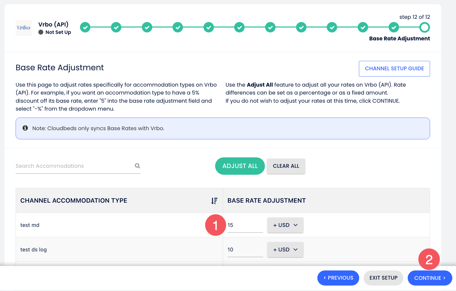 - Cloudbeds solo sincroniza las tarifas base con la API de Vrbo.