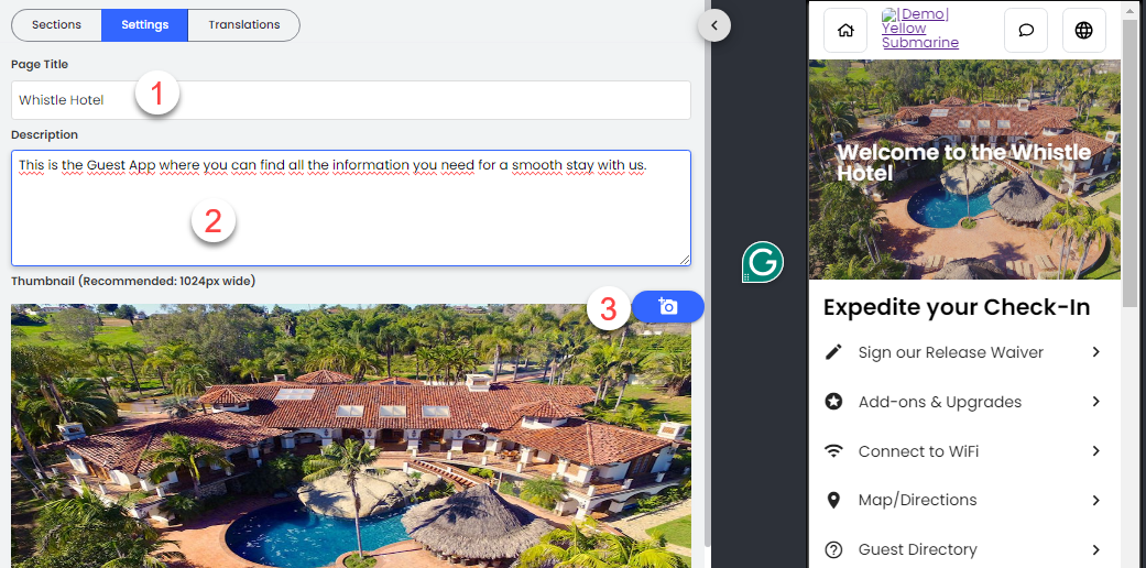 - Ve a cada sección para administrar/editar los detalles del Portal para huéspedes.