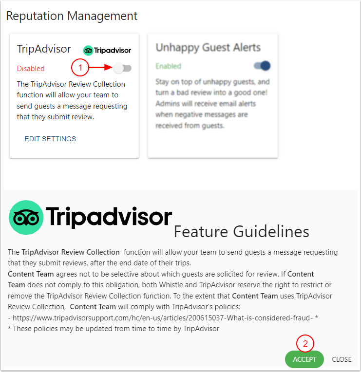 - Activa el interruptor en el banner de Alerta de Huéspedes Insatisfechos.