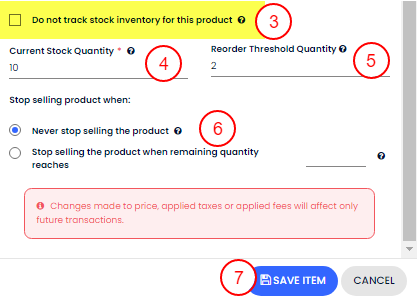 - Desmarque a opção "Não rastrear inventário de estoque para este produto" - Se esta caixa não estiver selecionada, o sistema atualizará a quantidade disponível sempre que uma transação for lançada.