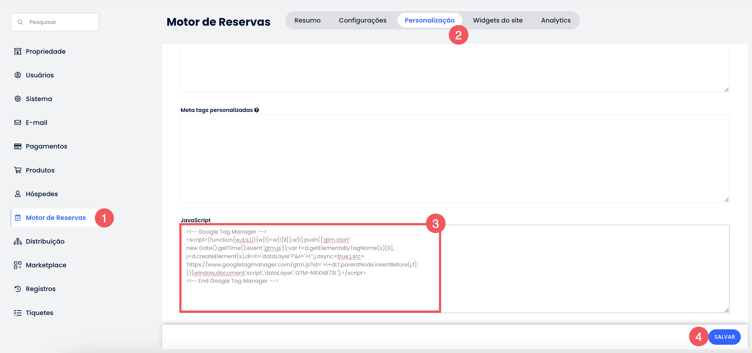 - Entre em contato com a Sojern para obter a versão mais atualizada do contêiner do Pixel Snippet para o seu Motor de Reservas Cloudbeds.