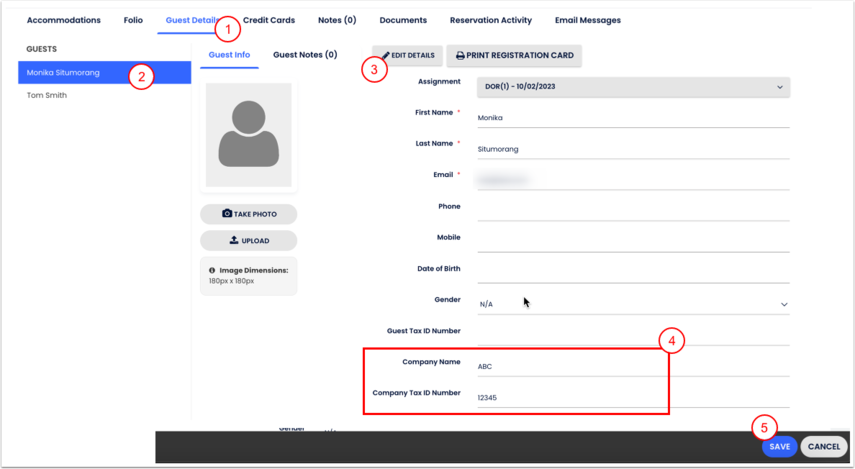 - Vá para Detalhes do Hóspede;