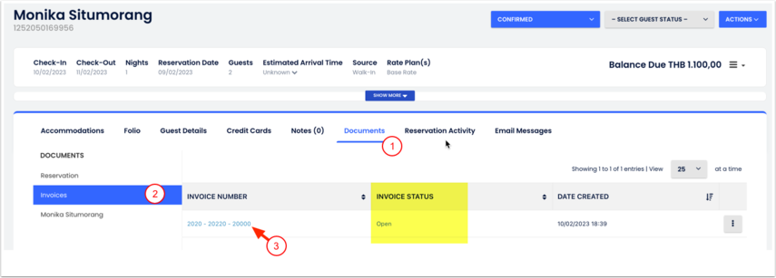 - Selecione o hóspede que você gostaria de faturar. Se os dados da empresa foram armazenados no perfil do hóspede, a fatura será emitida para a empresa em vez do hóspede. Verifique como adicionar dados da empresa ao perfil do hóspede: Se a fatura deve ser cobrada a uma empresa;