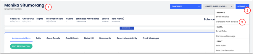 - Poderá gerar as faturas e enviar a fatura por e-mail para o hóspede