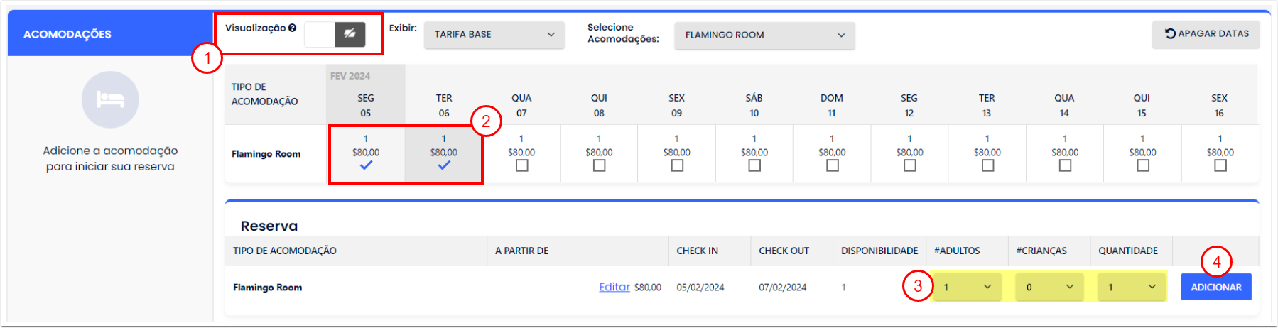 - Clique na caixa localizada abaixo do preço para selecionar a diária