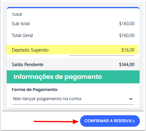 - Essa alteração será aplicada apenas a essa reserva específica. O depósito sugerido na página de Políticas permanece o mesmo.