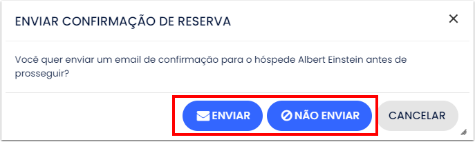 - Confirme se deseja ou não enviar a confirmação da reserva