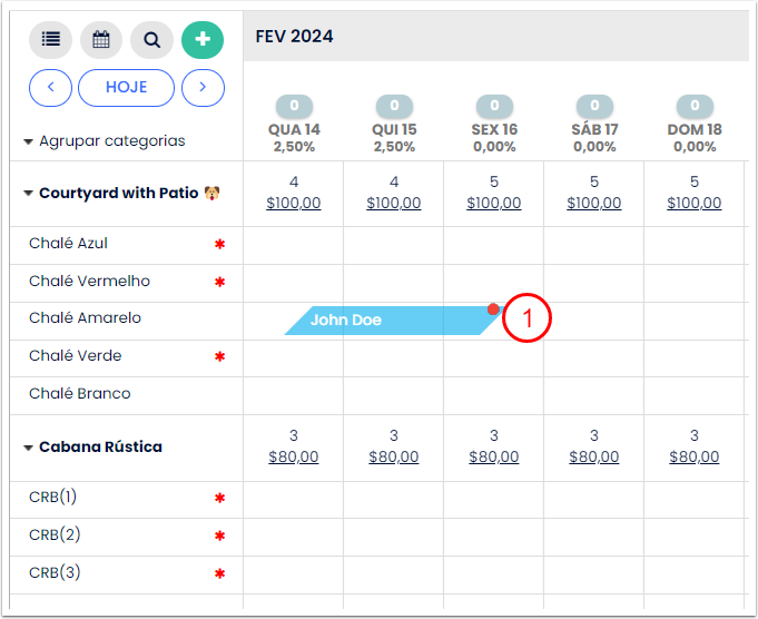 - Clique na reserva a ser movida, em seguida, arraste-a até o novo tipo de acomodação