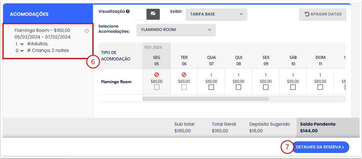 - Clique em detalhes da reserva para adicionar detalhes da reserva e do hóspede