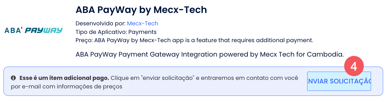 - Envie um e-mail à Mecx-Tech (support@mecx-tech.com) com as chaves de acesso ou informações fornecidas pelo processador de pagamentos e eles realizarão o processo de implantação