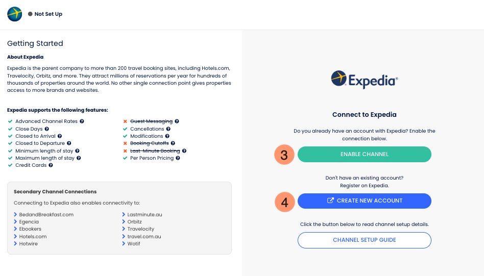 - Se você já tem uma conta na Expedia, clique em Ativar Canal;