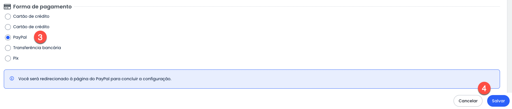 Veja as seguintes instruções sobre como realizar o pagamento com Paypal através do Portal de Faturamento.
