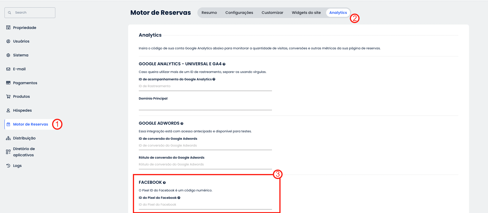 O pixel do Facebook é um código para o seu site que permite medir, otimizar e criar públicos para suas campanhas de anúncios. Este artigo irá orientá-lo sobre os conceitos básicos de adicionar um ID do Pixel do Facebook ao seu Motor de Reservas.