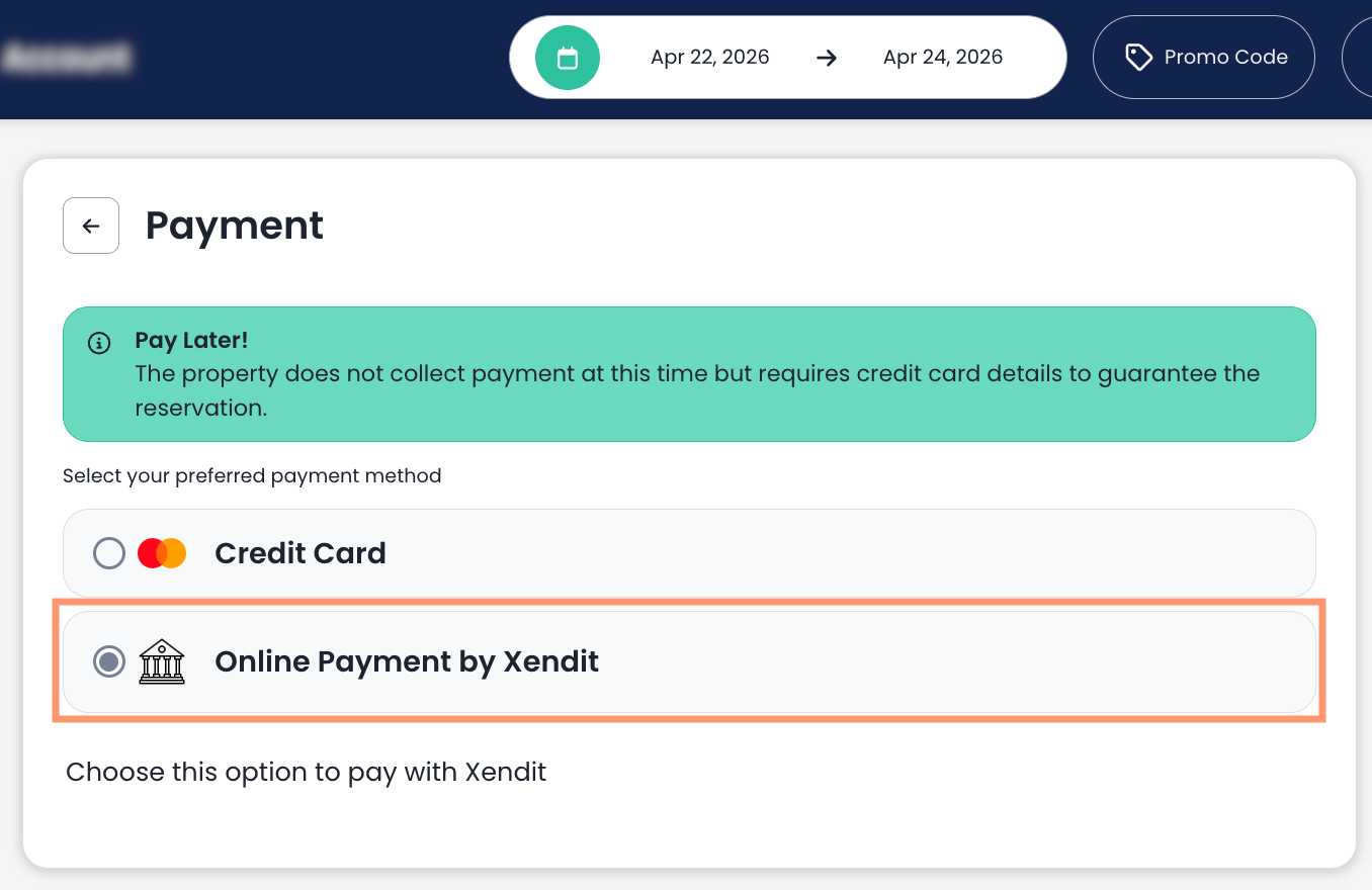 Xendit e outros processadores de pagamento personalizados não são atualmente suportados pelo Immersive Experience 2.0 do Motor de Reservas da Cloudbeds: