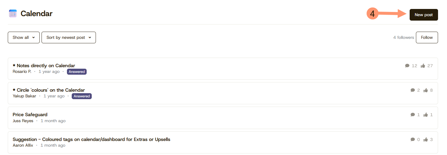 - Publique uma nova ideia (Post a New Idea): Compartilhe seu comentário ou sugestões sobre o Produto e os Serviços da plataforma da Cloudbeds.
