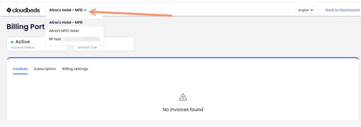 - A Razão Social da Empresa já estará listada com base nas informações adicionadas ao PMS da Cloudbeds.