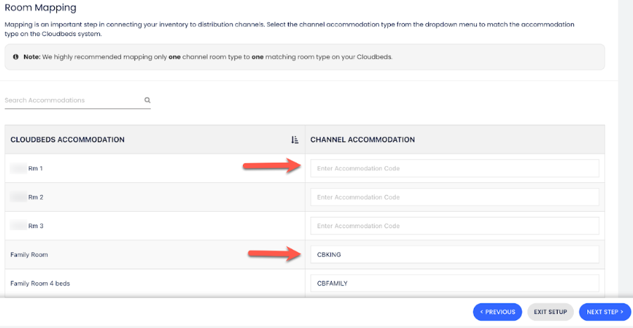 Mapeie suas acomodações. Insira o Código do Quarto no CRS do Windsurfer na coluna de Acomodações do Canal.