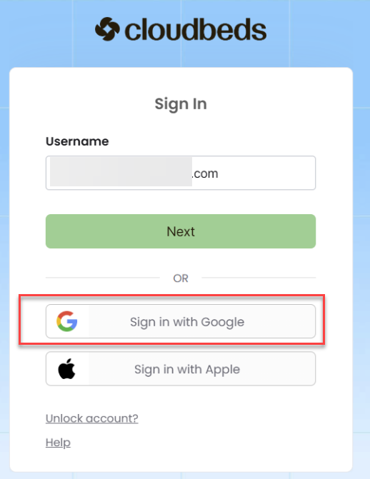 Usar uma conta do Google permite que você acesse o PMS da Cloudbeds de forma rápida e segura. Isso simplifica o processo de logon, eliminando a necessidade de gerenciar várias senhas ou códigos de autenticação externos.