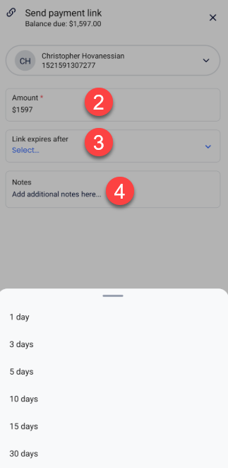 Você pode gerar um Link de pagamento no aplicativo da Cloudbeds e enviá-lo como mensagem para os hóspedes:
