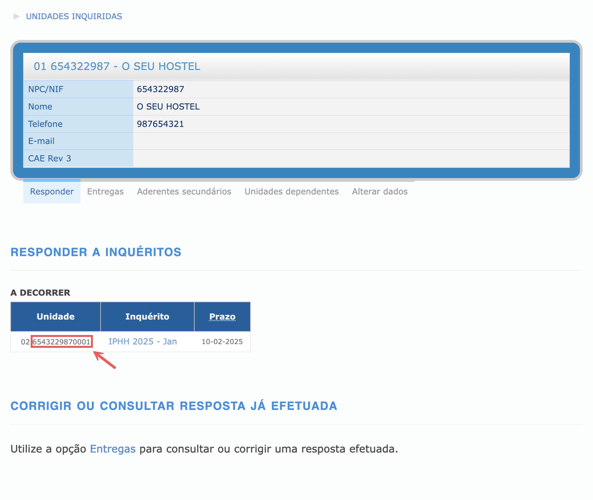 O "ID do Unidade" deve ser os últimos 13 dígitos de Webinq, omitindo os primeiros 2 dígitos, conforme mostrado abaixo.