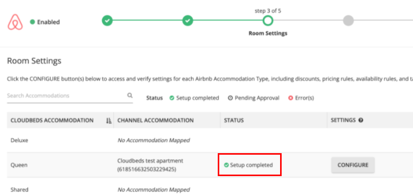 - Mapear tipos de acomodação no PMS da Cloudbeds para os anúncios correspondentes do Airbnb seguindo as orientações abaixo.