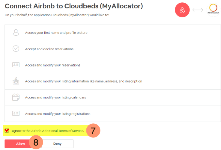 - Clique em Permitir para autorizar o PMS da Cloudbeds.